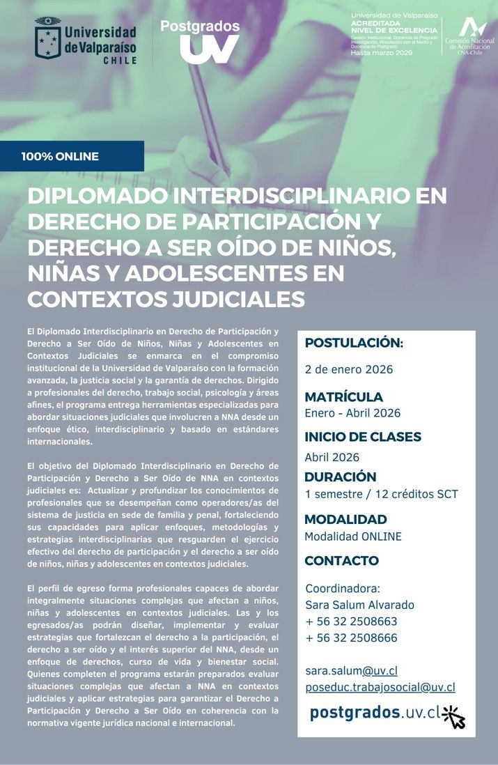 ODPP informa Diplomado Interdisciplinario en Derecho a Participación y Derecho a Ser Oído de niños, niñas y adolescentes en contextos judiciales
